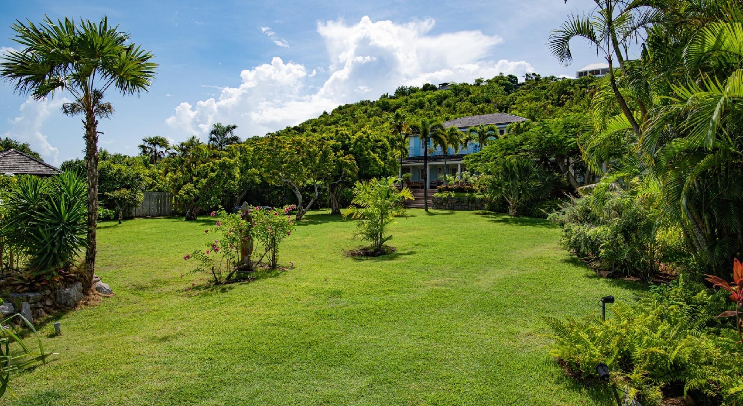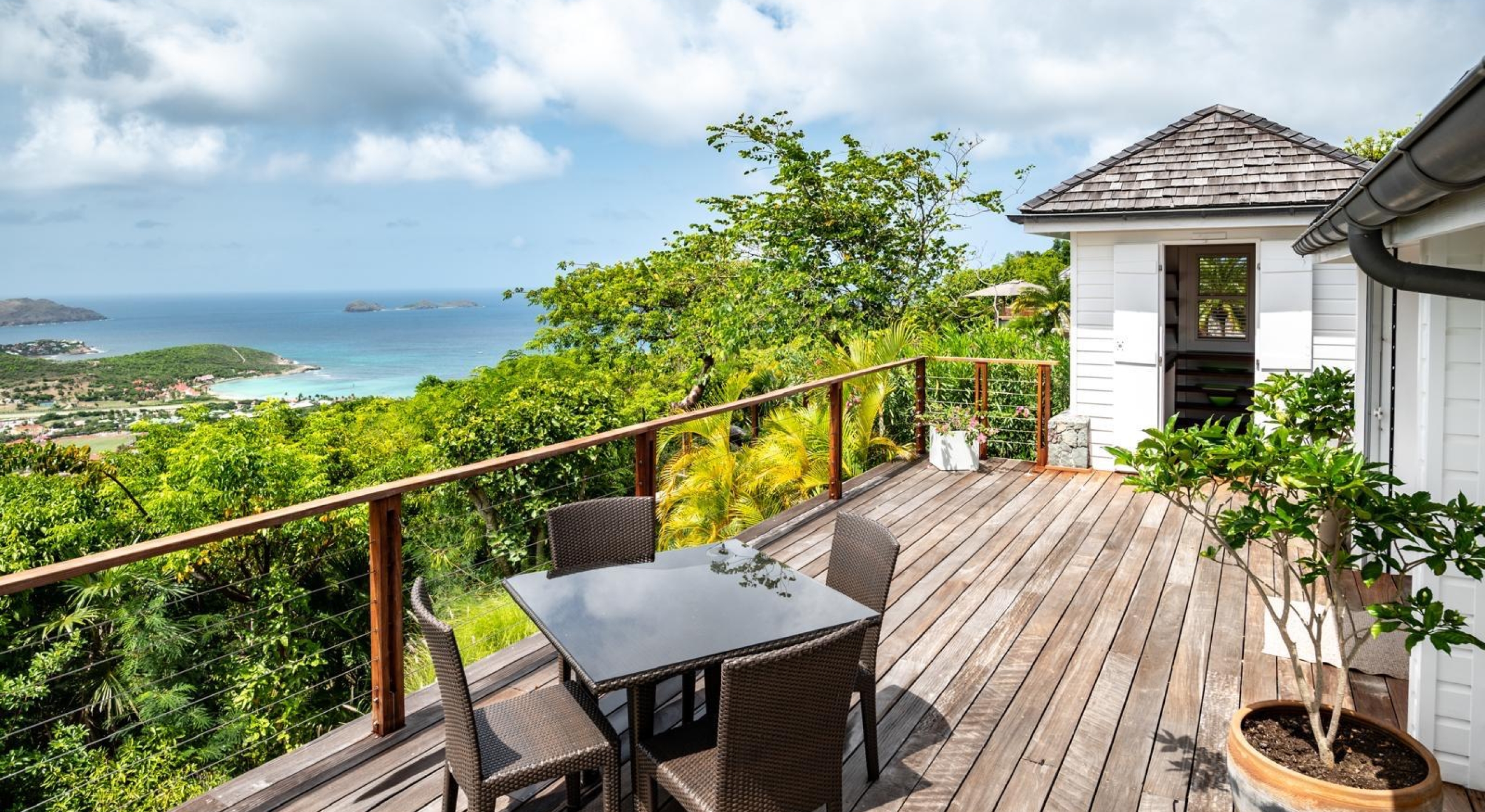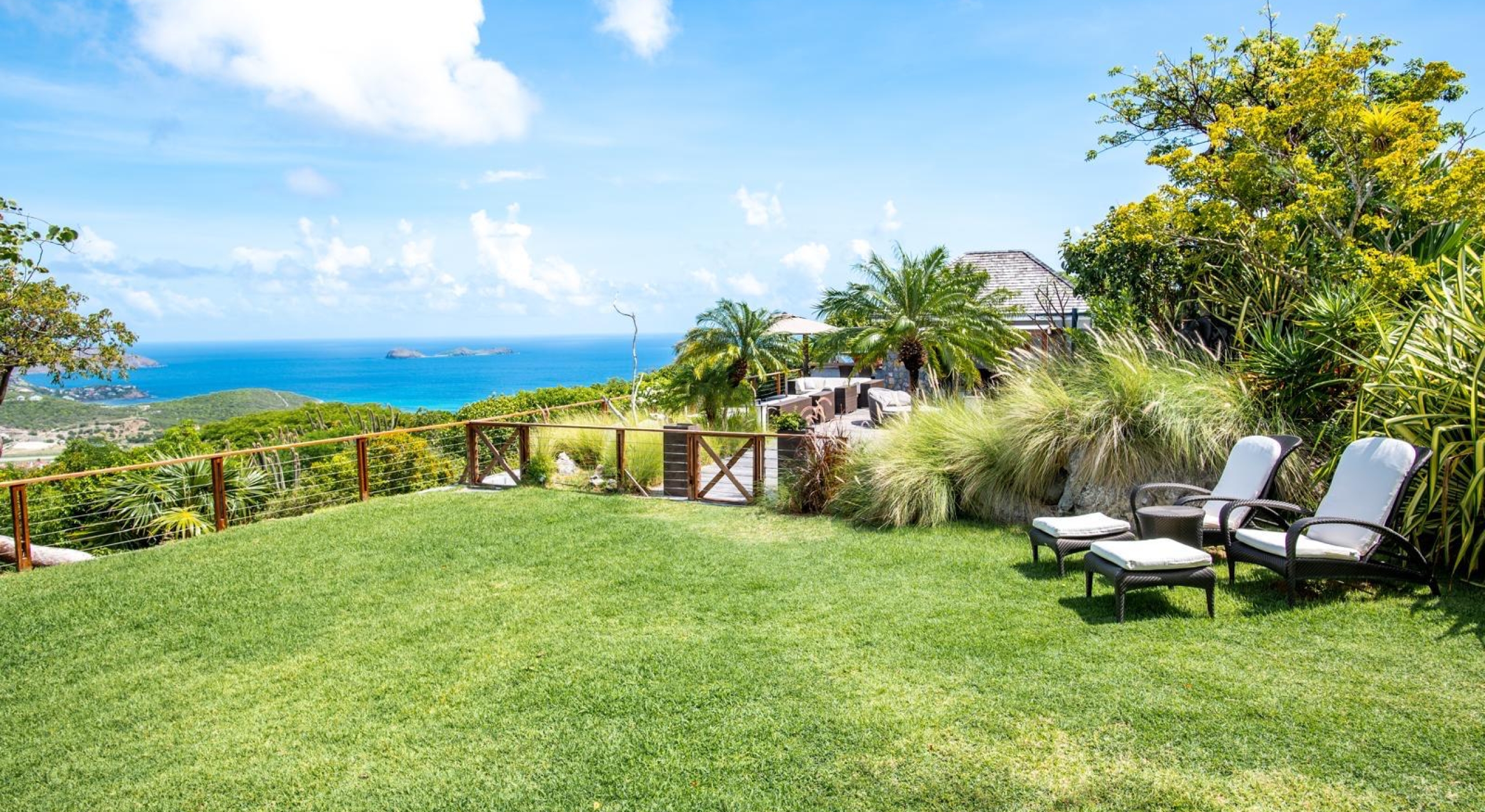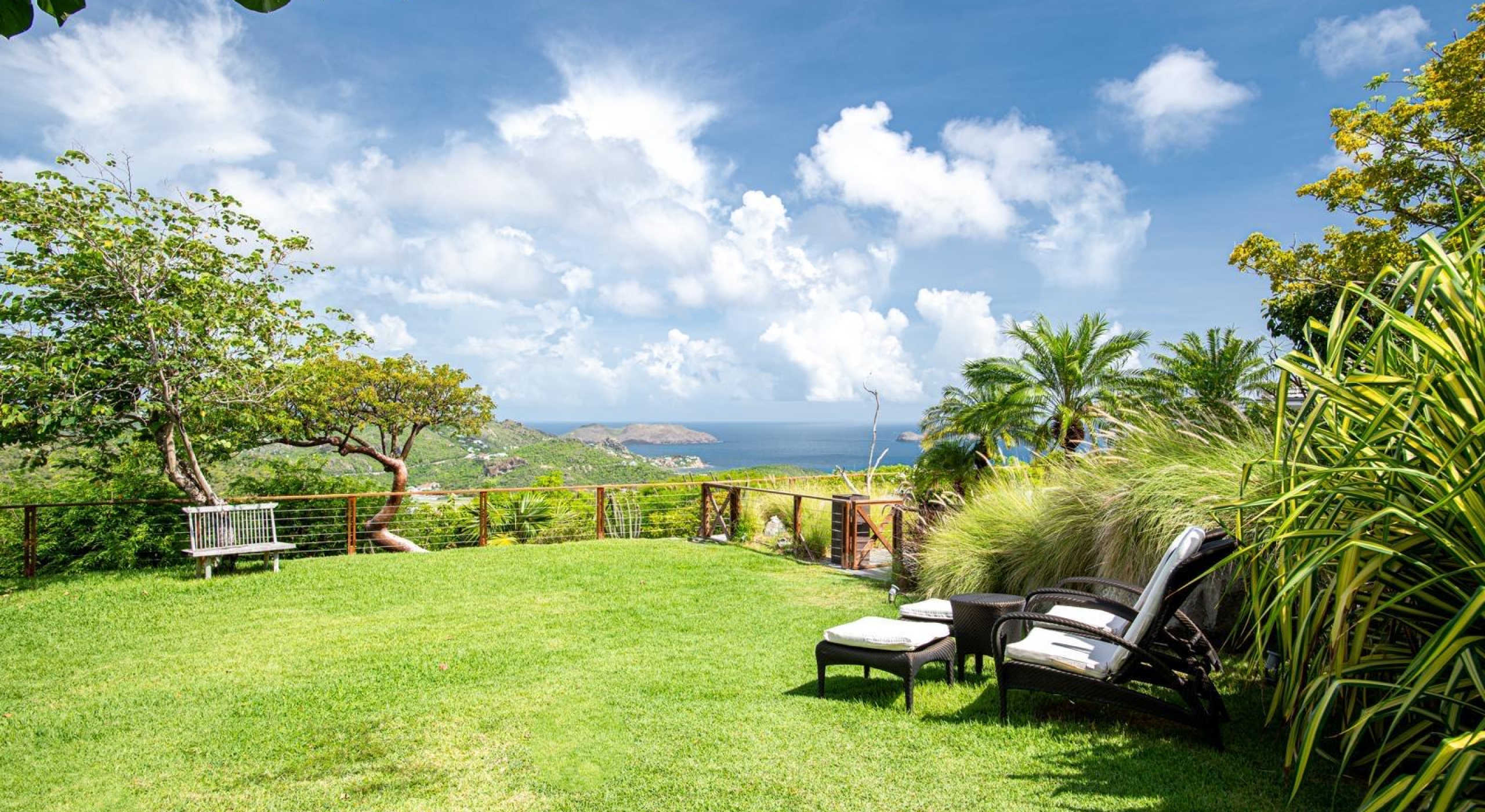 The property overhangs a part of St Barts, the hills and the islands far off. It offers a very nice diversified view.