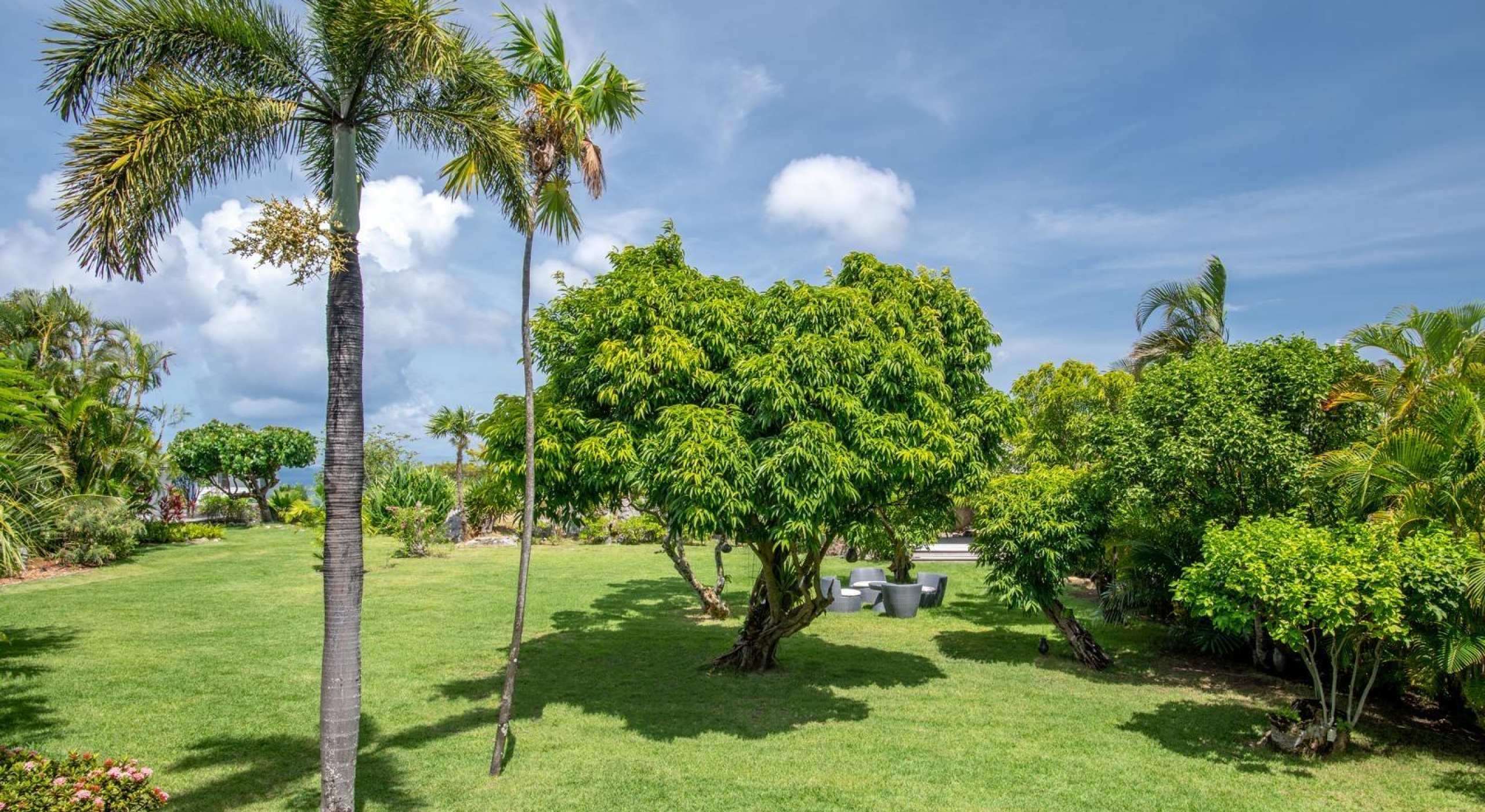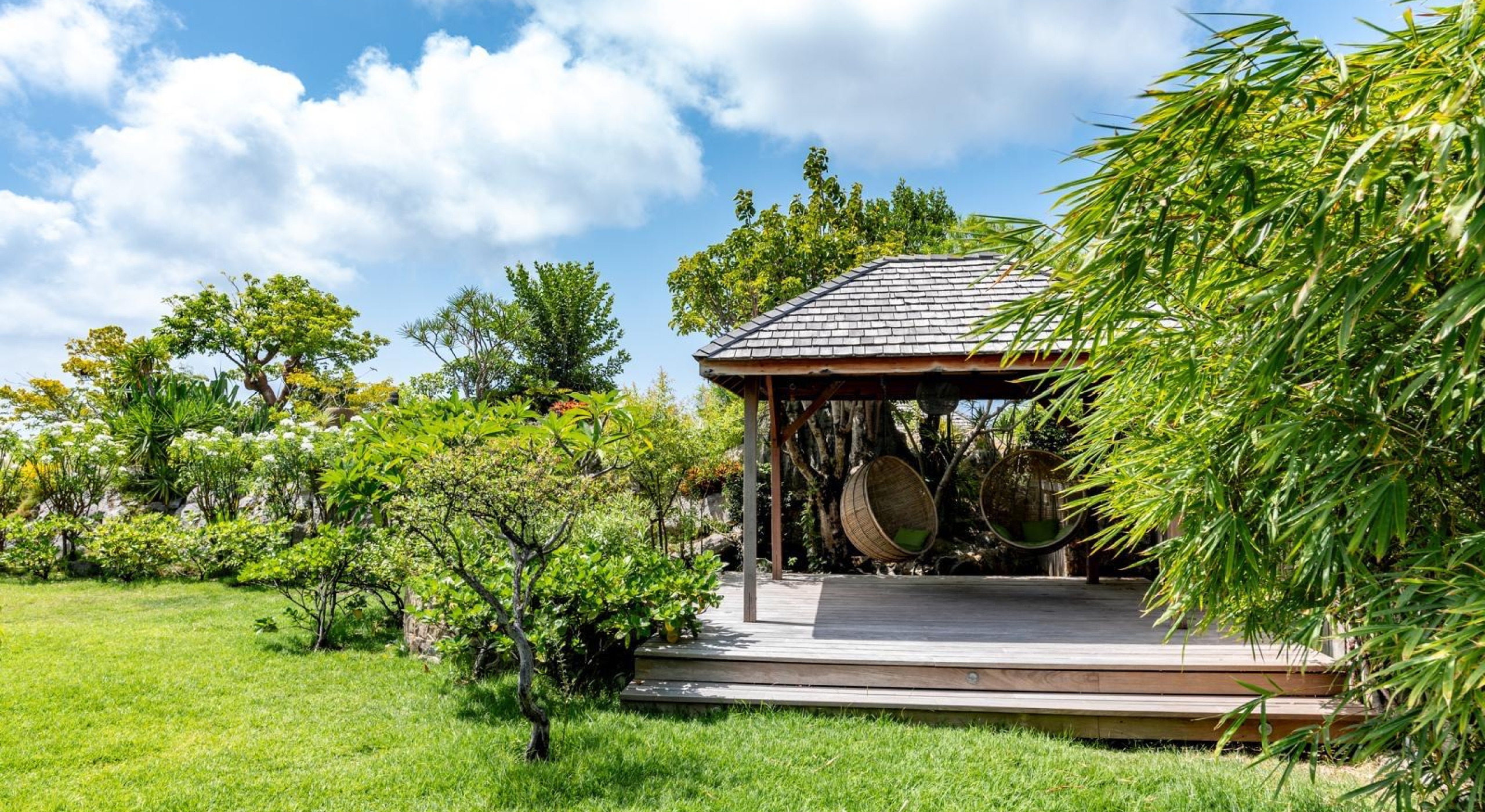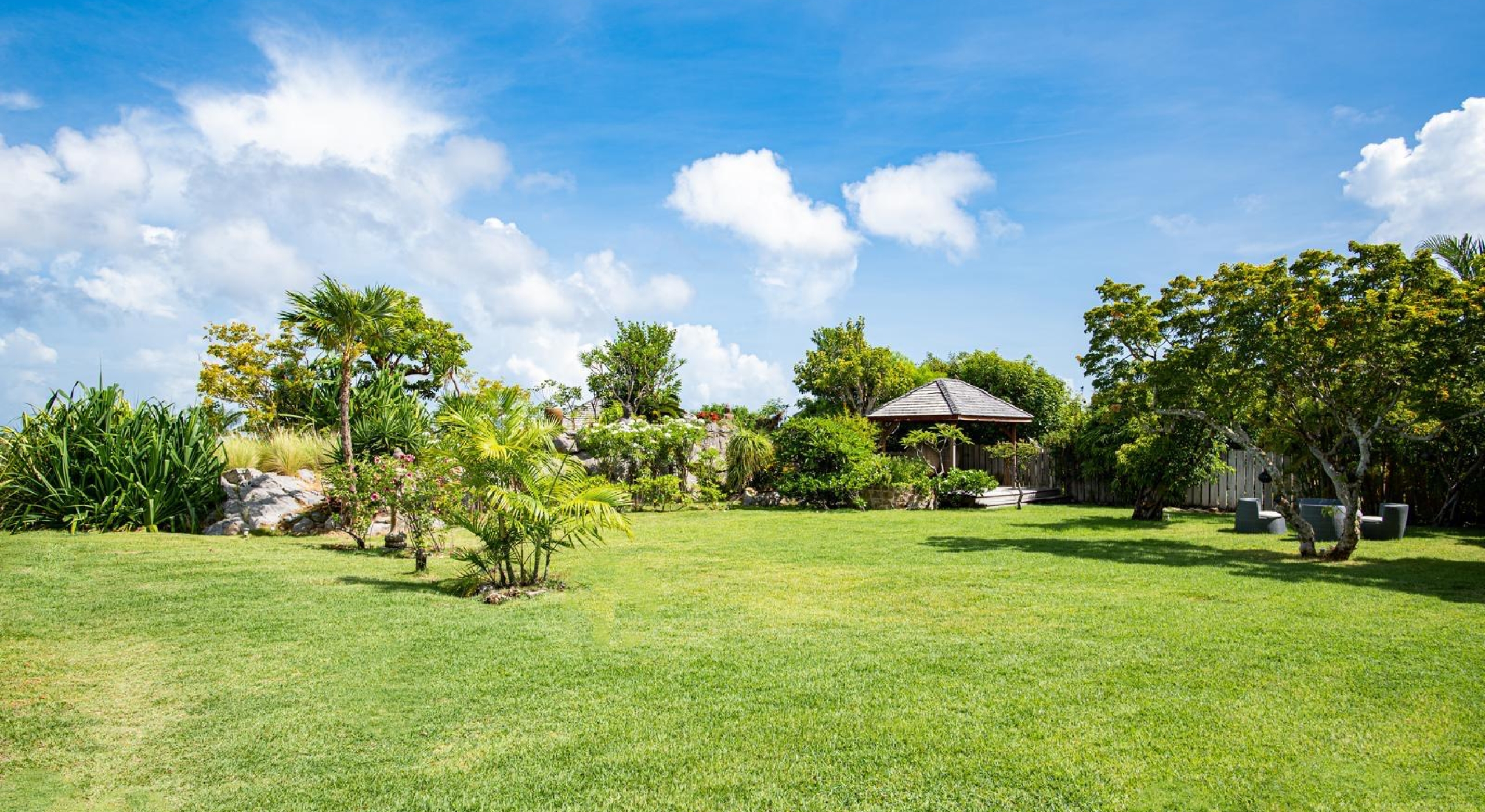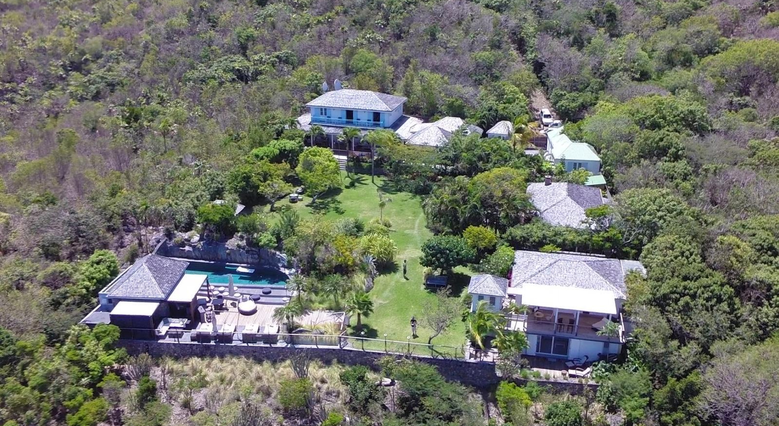 The property overhangs a part of St Barts, the hills and the islands far off. It offers a very nice diversified view.