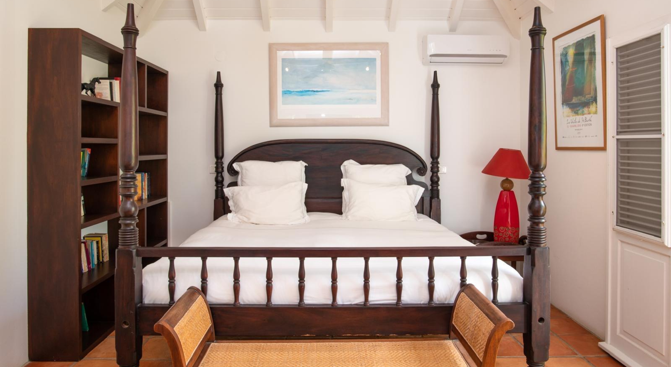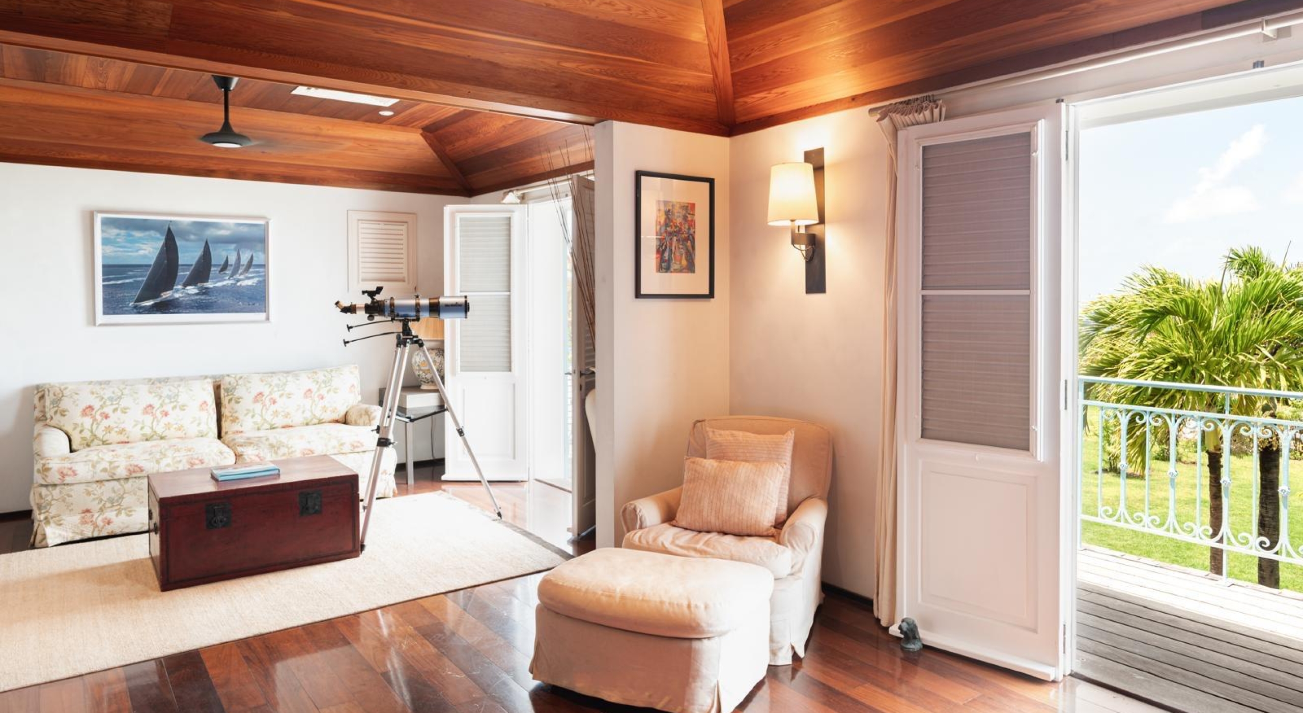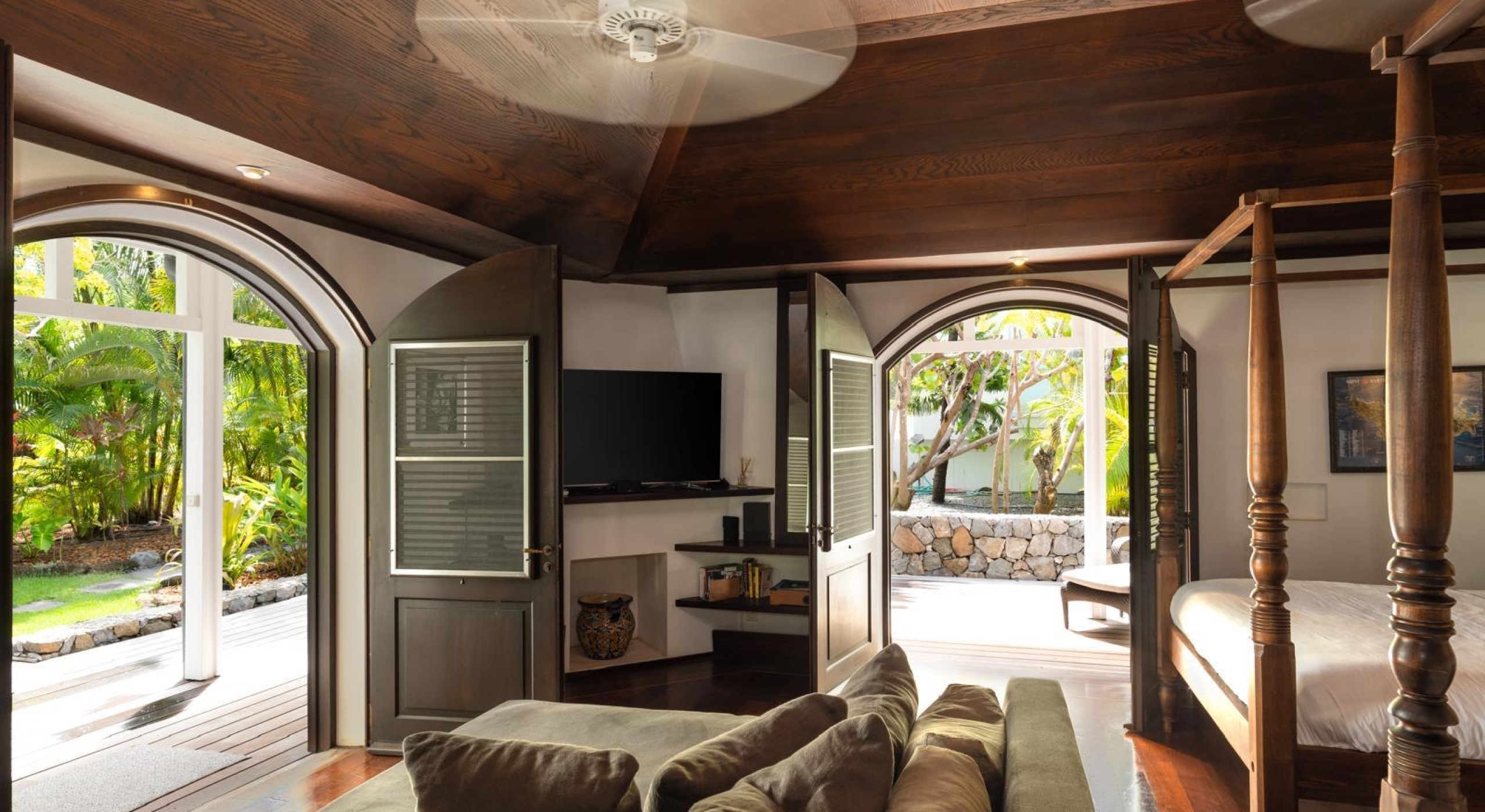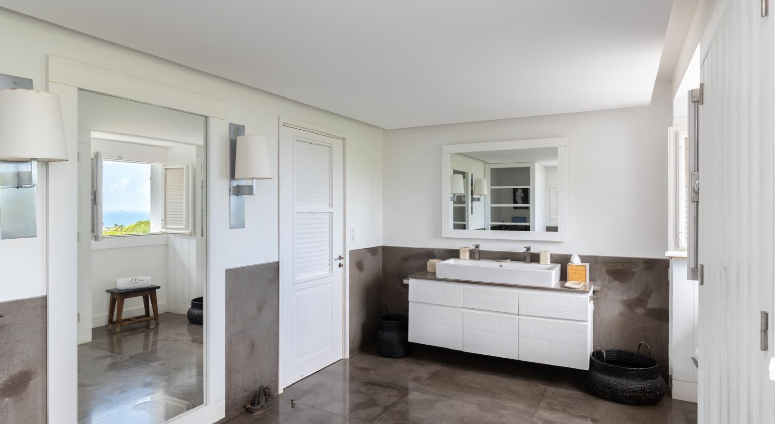 From the living you access the master bedroom on the first floor. Spacious, it opens onto a balcony overlooking the tropical garden and the ocean.