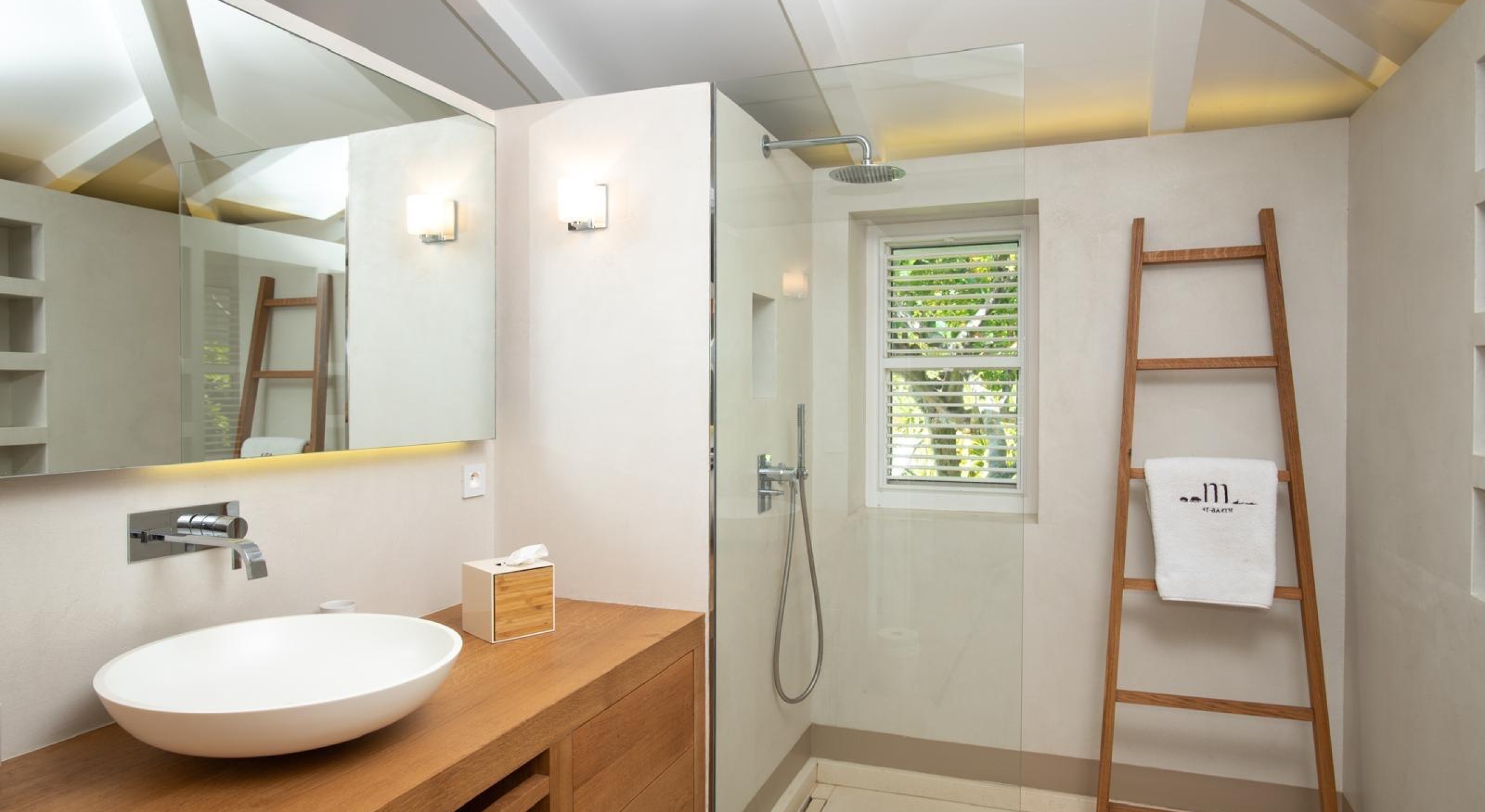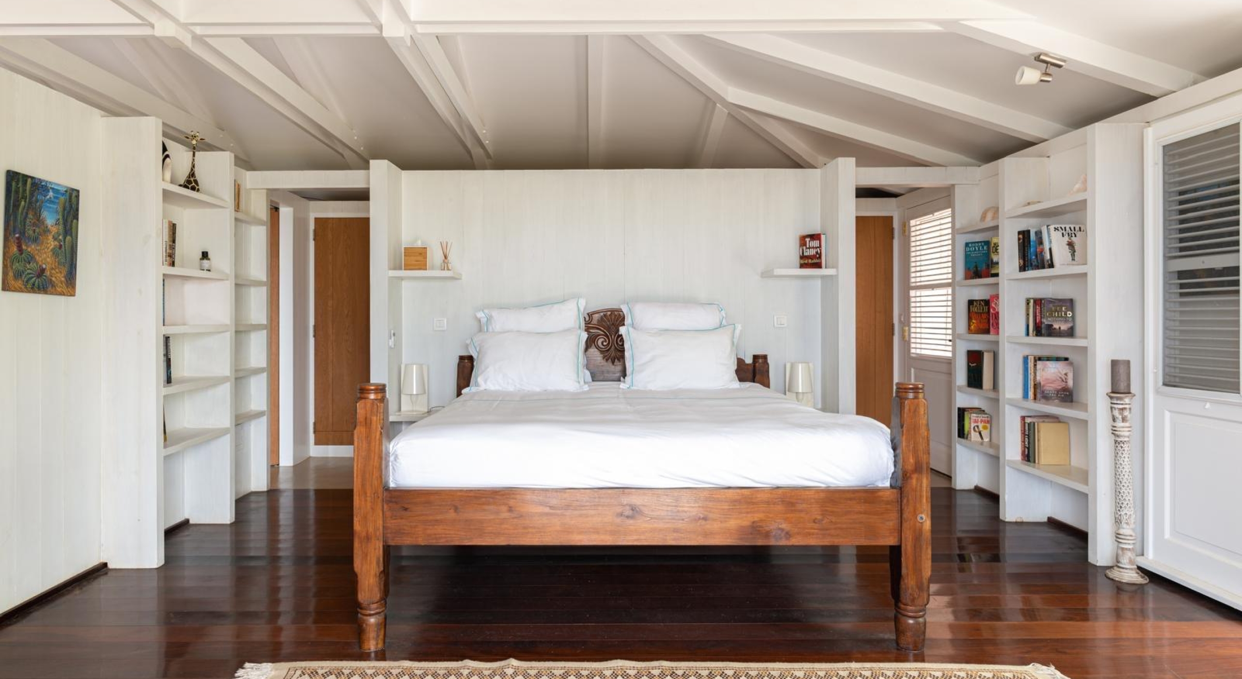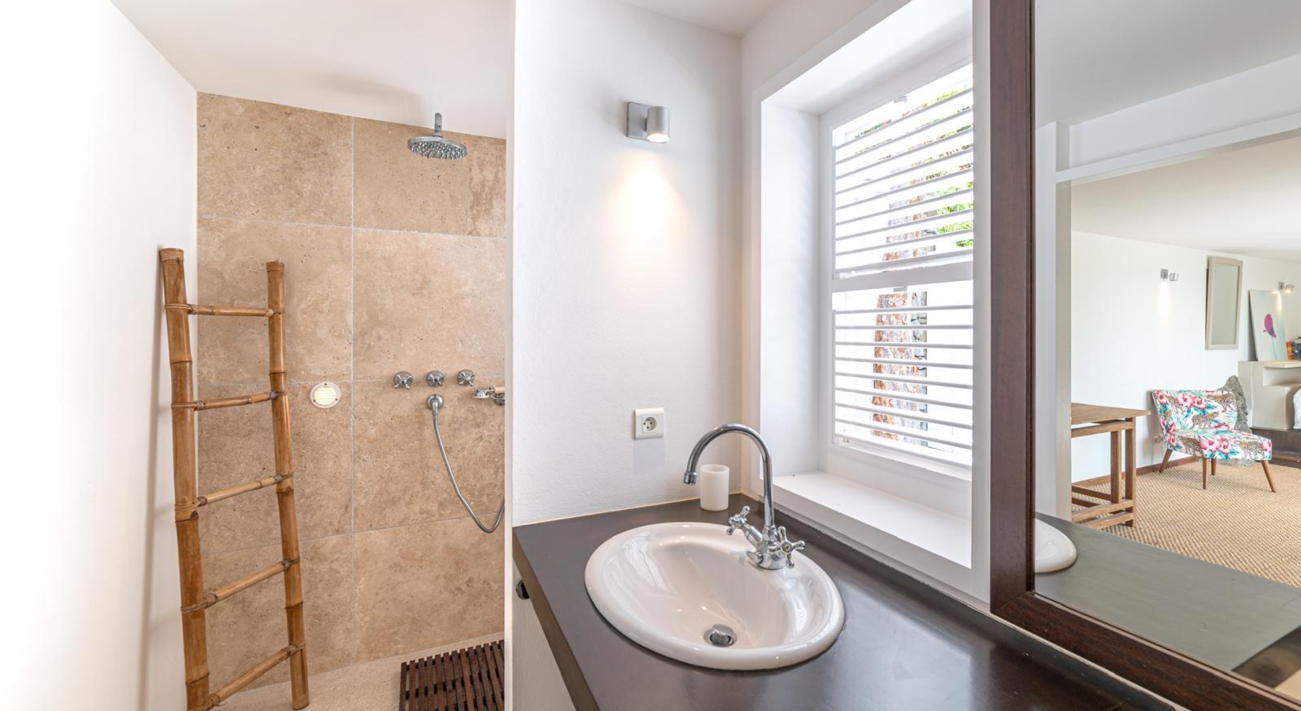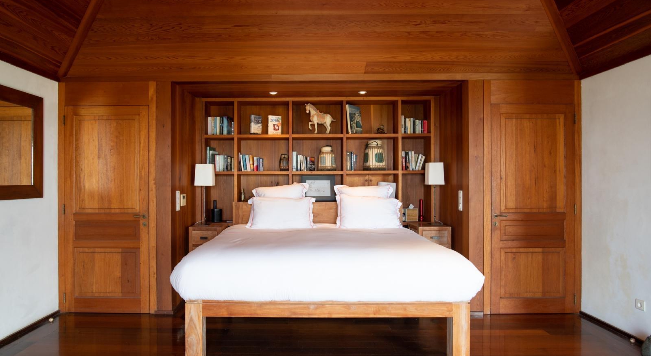 From the living you access the master bedroom on the first floor. Spacious, it opens onto a balcony overlooking the tropical garden and the ocean.
