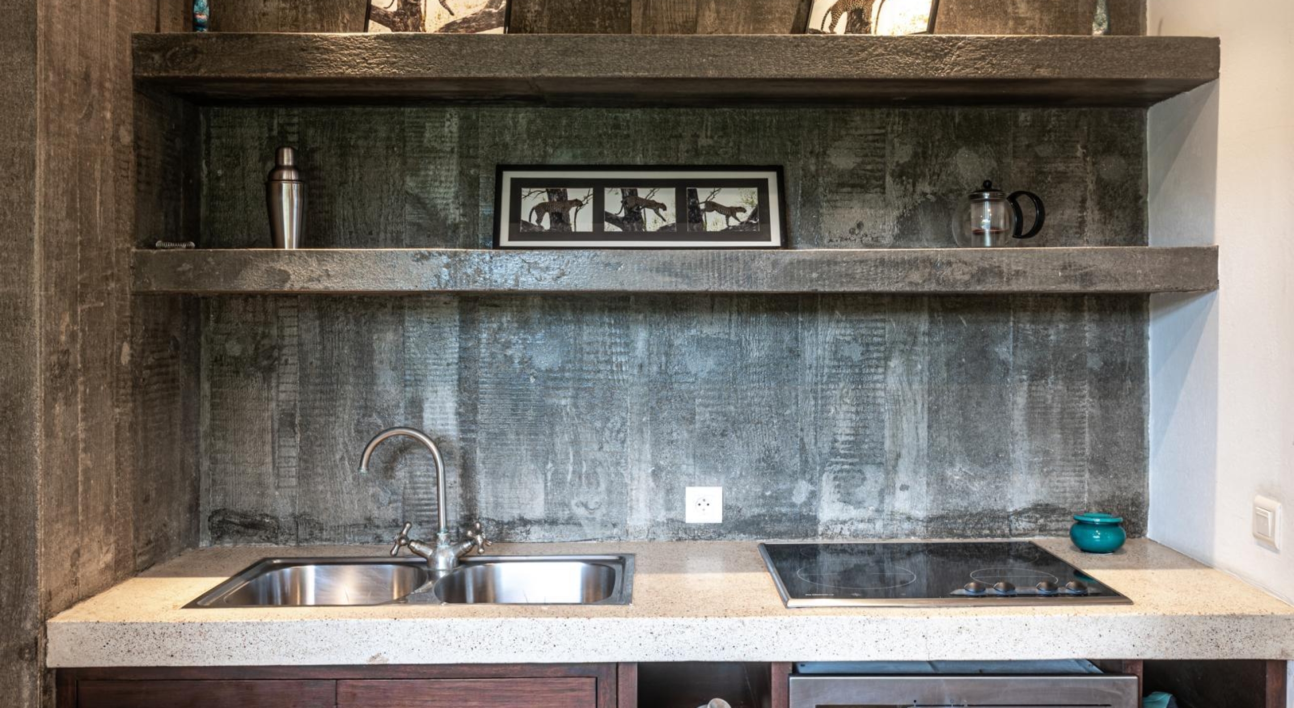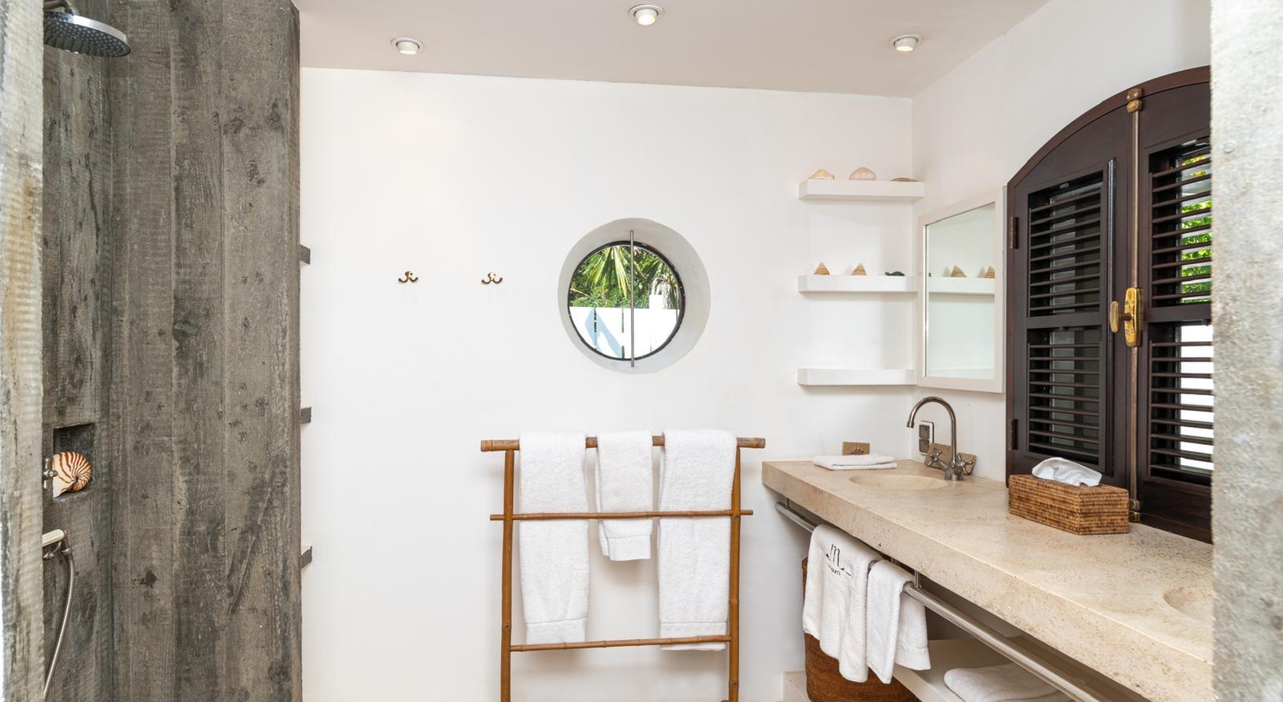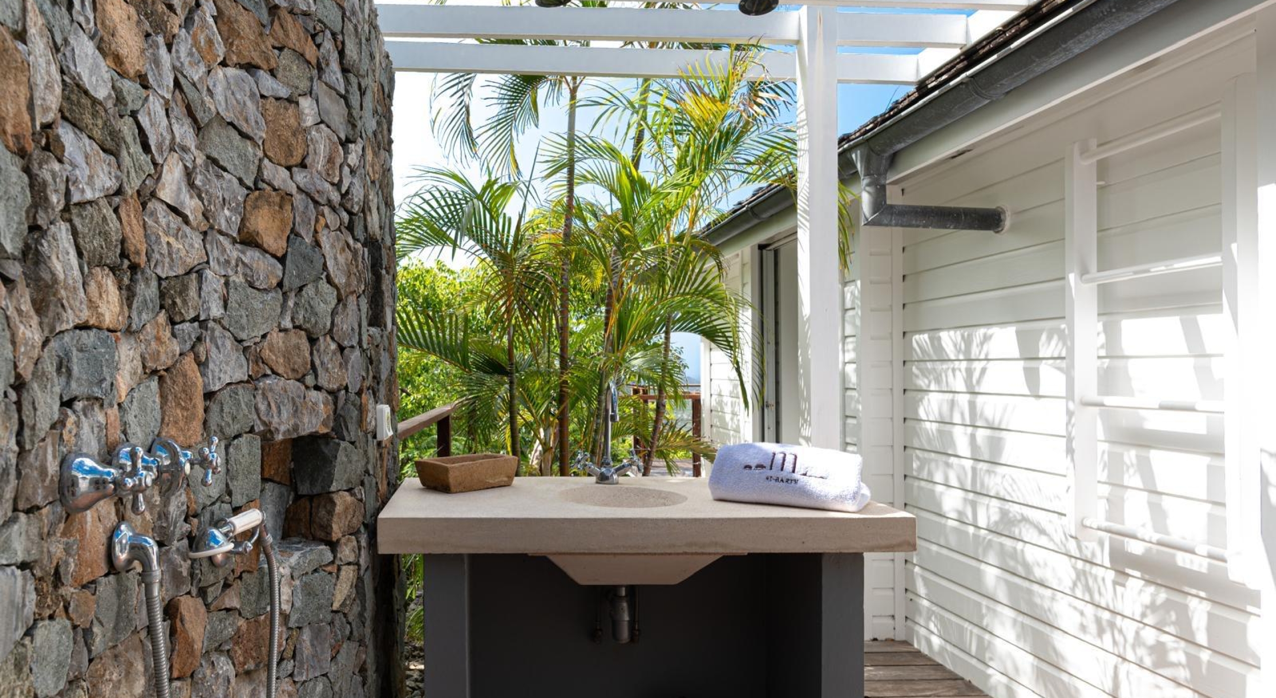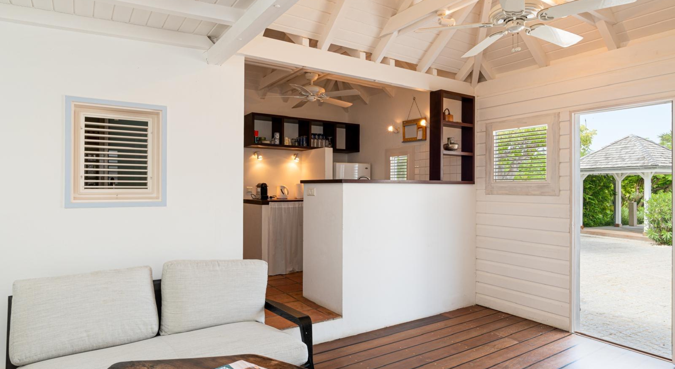The sunset pavilion, at the edge of the property offers a bedroom with a separate living, a bathroom with a tub and an outside shower.